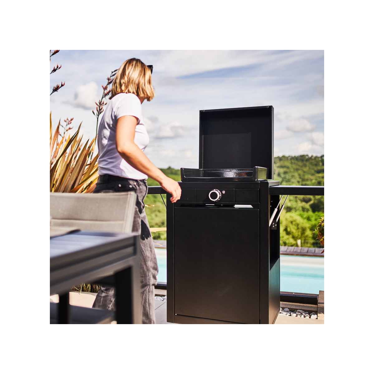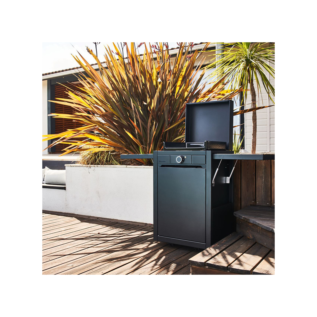 Le couvercle de protection Modern est le capot spécialement conçu pour protéger les planchas de la gamme Modern, des chocs, des poussières et des intempéries entre deux utilisations. Disponible en inox ou en acier noir, il se marie à la perfection avec la plancha Modern et le chariot Modern de votre choix. Doté d'un système d'accroche sur charnières, le capot Modern se fixe au châssis de votre plancha Modern pour former un ensemble élégant et facile à manipuler.