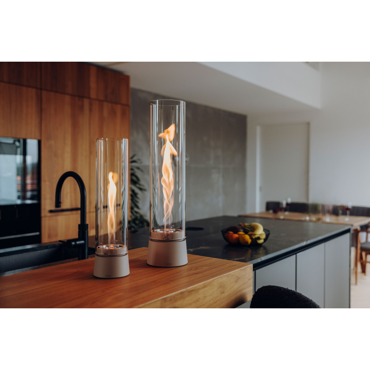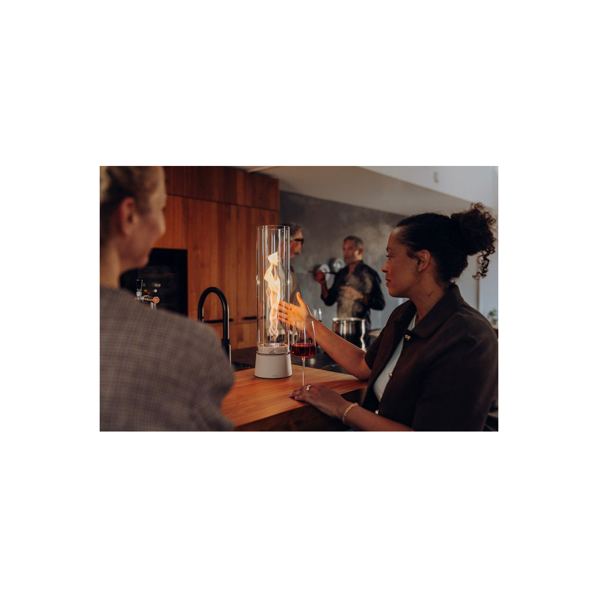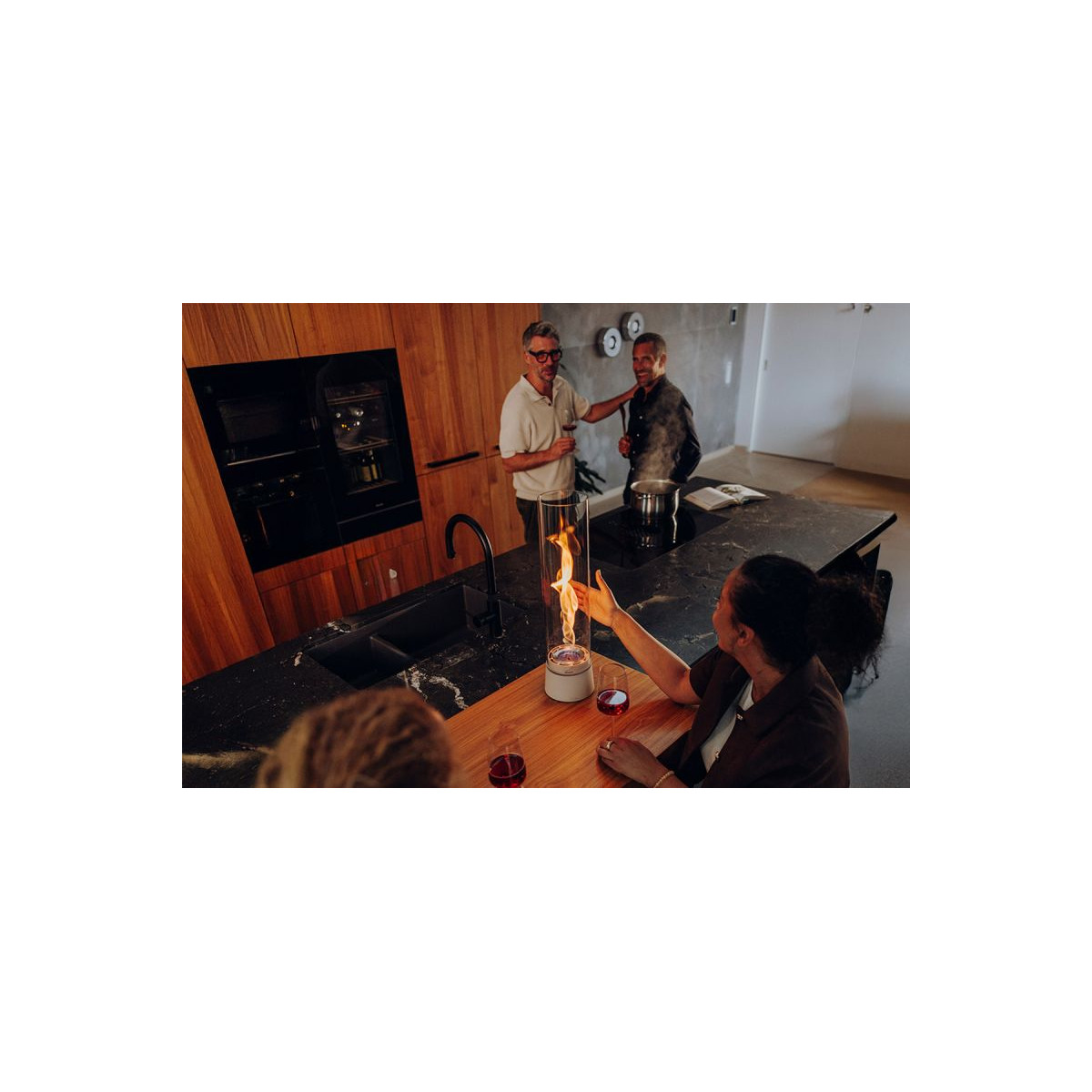 Design primé & ambiance chaleureuse ! Offrez à votre intérieur une touche d’élégance avec la cheminée de table SPIN Air, plusieurs fois récompensée pour son design épuré et sa technologie innovante. Idéale pour créer une atmosphère cosy et raffinée, elle sublime vos soirées avec une flamme spectaculaire, visible même en plein jour. Pourquoi choisir SPIN Air ? Design contemporain : un objet déco unique qui attire tous les regards. Technologie Bio-Burner brevetée : combustion propre et sécurisée. Autonomie optimisée : 100 à 150 min avec 500 ml de bioéthanol höfats, +50 % avec l’Eco-Ring. Chaleur agréable : jusqu’à 2000 W pour une ambiance douce. Utilisation sûre en intérieur : conforme à la norme DIN EN 16647. Combustion écologique : sans odeur, sans fumée, sans suie grâce au bioéthanol liquide biologique Höfats. Contenu du coffret : Base et corps latéral avec récipient de sécurité. Brûleur Bio-Burner avec Eco-Ring et couvercle d’extinction. Cylindre en verre. Important : Utilisation exclusive avec le bioéthanol liquide Höfats (non inclus). SPIN Air n’est pas conçu pour un chauffage continu.