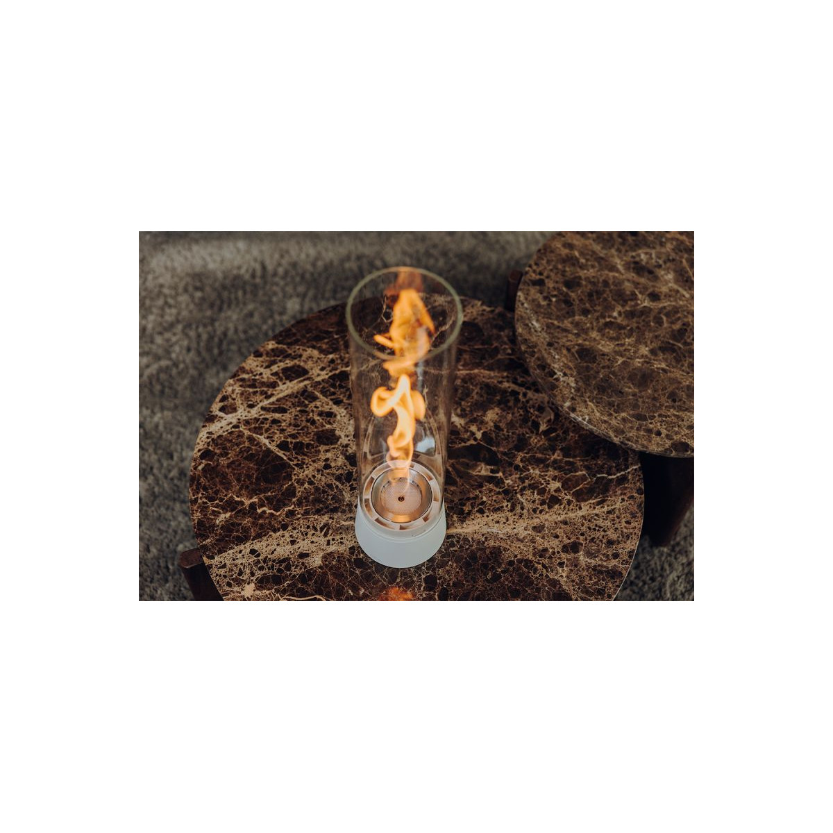 Design primé & ambiance chaleureuse ! Offrez à votre intérieur une touche d’élégance avec la cheminée de table SPIN Air, plusieurs fois récompensée pour son design épuré et sa technologie innovante. Idéale pour créer une atmosphère cosy et raffinée, elle sublime vos soirées avec une flamme spectaculaire, visible même en plein jour. Pourquoi choisir SPIN Air ? Design contemporain : un objet déco unique qui attire tous les regards. Technologie Bio-Burner brevetée : combustion propre et sécurisée. Autonomie optimisée : 100 à 150 min avec 500 ml de bioéthanol höfats, +50 % avec l’Eco-Ring. Chaleur agréable : jusqu’à 2000 W pour une ambiance douce. Utilisation sûre en intérieur : conforme à la norme DIN EN 16647. Combustion écologique : sans odeur, sans fumée, sans suie grâce au bioéthanol liquide biologique Höfats. Contenu du coffret : Base et corps latéral avec récipient de sécurité. Brûleur Bio-Burner avec Eco-Ring et couvercle d’extinction. Cylindre en verre. Important : Utilisation exclusive avec le bioéthanol liquide Höfats (non inclus). SPIN Air n’est pas conçu pour un chauffage continu.
