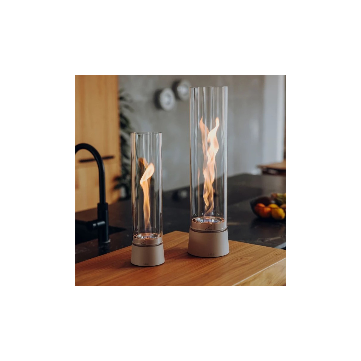Design primé & ambiance chaleureuse ! Offrez à votre intérieur une touche d’élégance avec la cheminée de table SPIN Air, plusieurs fois récompensée pour son design épuré et sa technologie innovante. Idéale pour créer une atmosphère cosy et raffinée, elle sublime vos soirées avec une flamme spectaculaire, visible même en plein jour. Pourquoi choisir SPIN Air ? Design contemporain : un objet déco unique qui attire tous les regards. Technologie Bio-Burner brevetée : combustion propre et sécurisée. Autonomie optimisée : 100 à 150 min avec 500 ml de bioéthanol höfats, +50 % avec l’Eco-Ring. Chaleur agréable : jusqu’à 2000 W pour une ambiance douce. Utilisation sûre en intérieur : conforme à la norme DIN EN 16647. Combustion écologique : sans odeur, sans fumée, sans suie grâce au bioéthanol liquide biologique Höfats. Contenu du coffret : Base et corps latéral avec récipient de sécurité. Brûleur Bio-Burner avec Eco-Ring et couvercle d’extinction. Cylindre en verre. Important : Utilisation exclusive avec le bioéthanol liquide Höfats (non inclus). SPIN Air n’est pas conçu pour un chauffage continu.