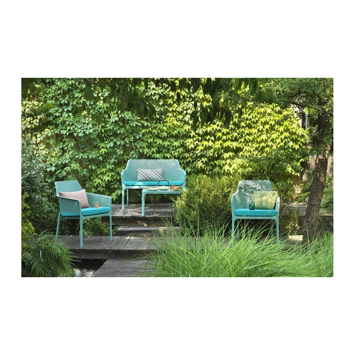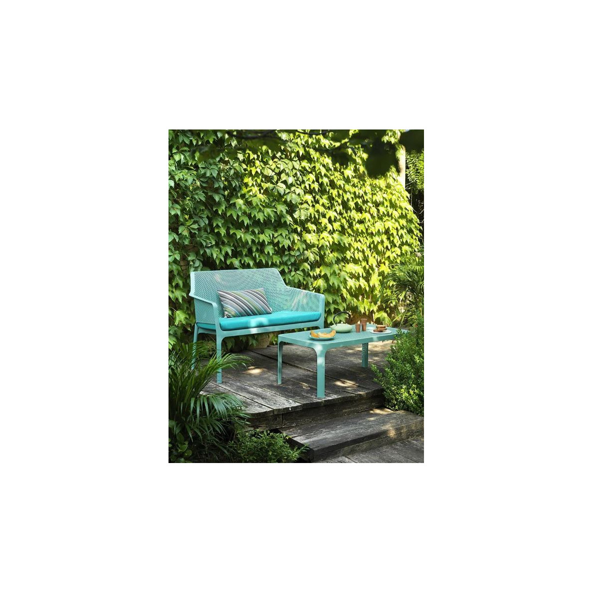 Net Bench est un banc d’extérieur deux places en résine renforcée de fibre de verre qui séduit par son style à la fois romantique et accueillant. Son design se distingue par un élégant motif de fleurs carrées et rayonnantes, apportant une touche décorative originale tout en conservant une grande légèreté visuelle. Ses lignes pures et harmonieuses, associées à des profilés fins et continus, créent un ensemble fluide et contemporain qui s’intègre facilement dans différents espaces extérieurs, tels qu’un jardin, une terrasse ou un patio. Conçu pour allier esthétique et durabilité, ce banc offre une assise confortable et résistante, idéale pour profiter de moments de détente à deux. Pour encore plus de confort et de personnalisation, Net Bench peut être complété par une large gamme de coussins décoratifs, permettant d’adapter son style et son niveau de confort selon les envies et l’aménagement de votre espace extérieur.