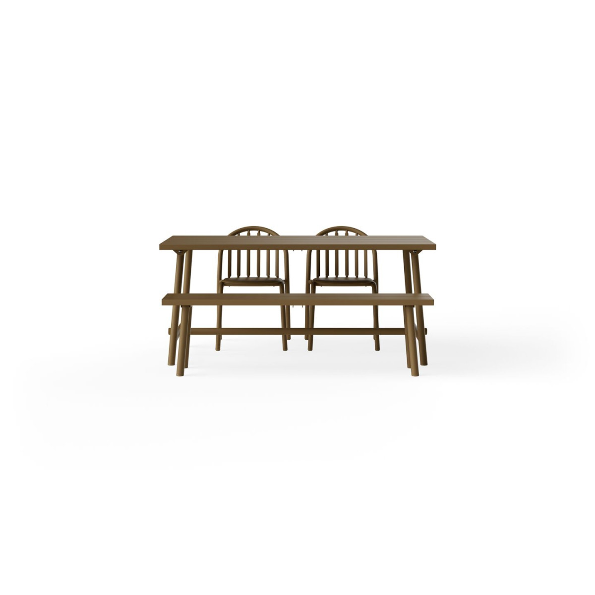 La Fred’s Bench est un banc de jardin avec une silhouette épurée et un design ingénieux qui trouve sa place partout. Son style rend hommage à la banquette de pique-nique classique mais en version plus élégante et légère. Avec une largeur de 160 centimètres elle offre trois places assises. Ce banc est fabriqué en aluminium robuste ce qui permet de le déplacer facilement et de le garder prêt pour de longues années dehors. Tu peux le combiner sans effort avec les Fred’s Tables mais il tient aussi tout seul, par exemple dans le jardin devant la maison. Grâce au trou de fixation sous l’assise tu peux l’attacher avec une chaîne ou un cadenas. Tu veux plus de confort? Alors opte pour le Fred’s Bench Pillow assorti.
