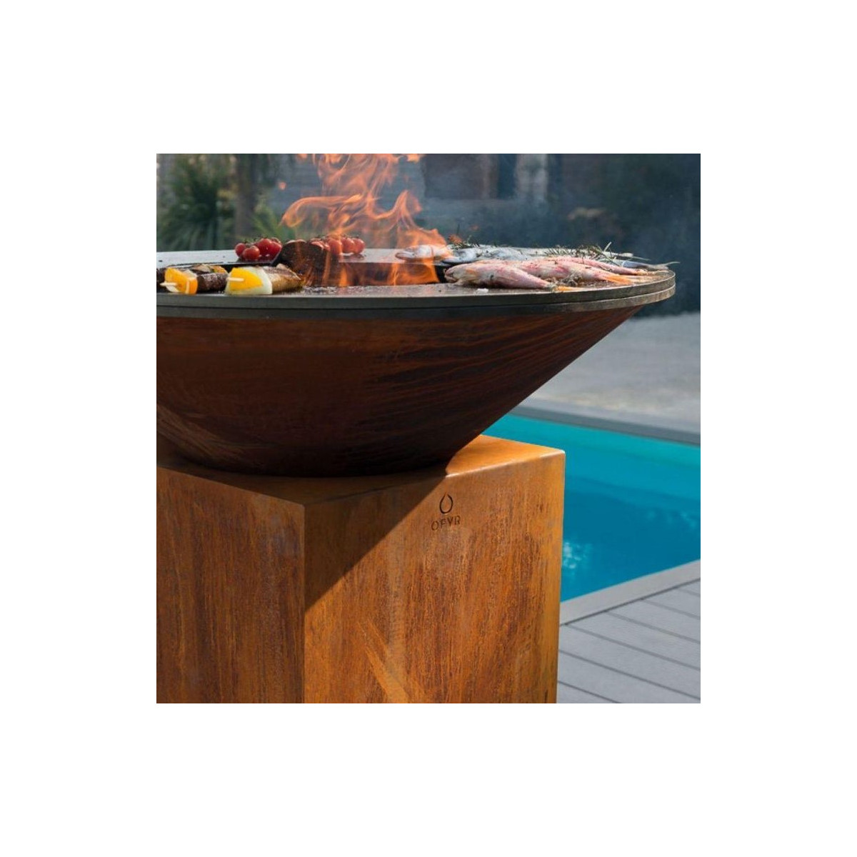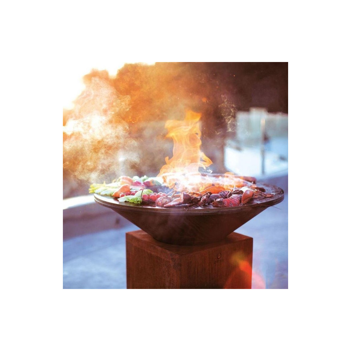 Le brasero OFYR Classic Corten 100 allie élégance, robustesse et convivialité pour vos repas en extérieur. Conçu en acier Corten, il se patine naturellement avec le temps, apportant chaleur et caractère à votre espace extérieur. Sa large surface de cuisson permet de griller et de préparer des plats directement autour du feu, transformant chaque moment partagé en une expérience culinaire unique. Pratique et esthétique, ce brasero s’intègre facilement à tous les environnements et devient rapidement le point central de vos repas entre amis ou en famille.