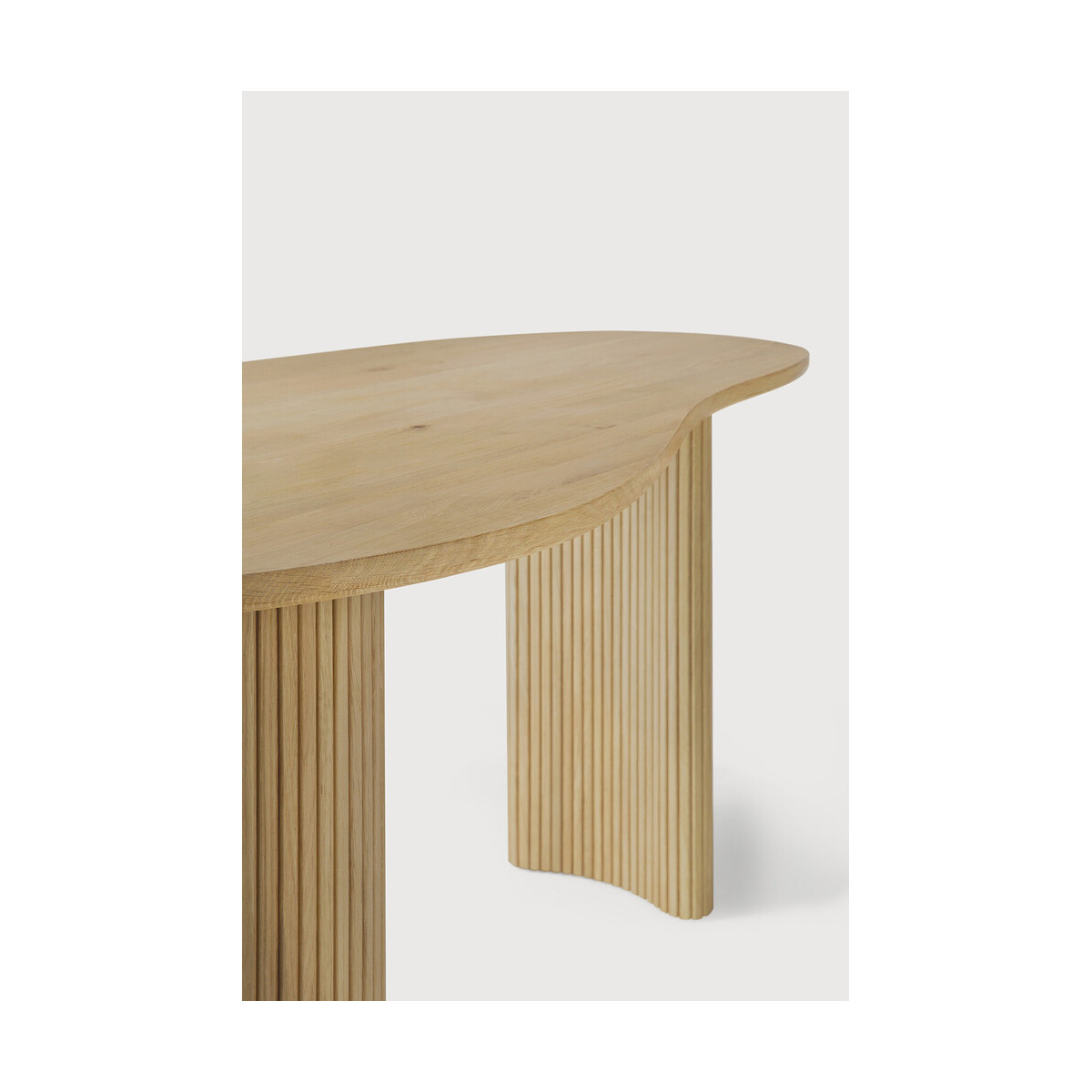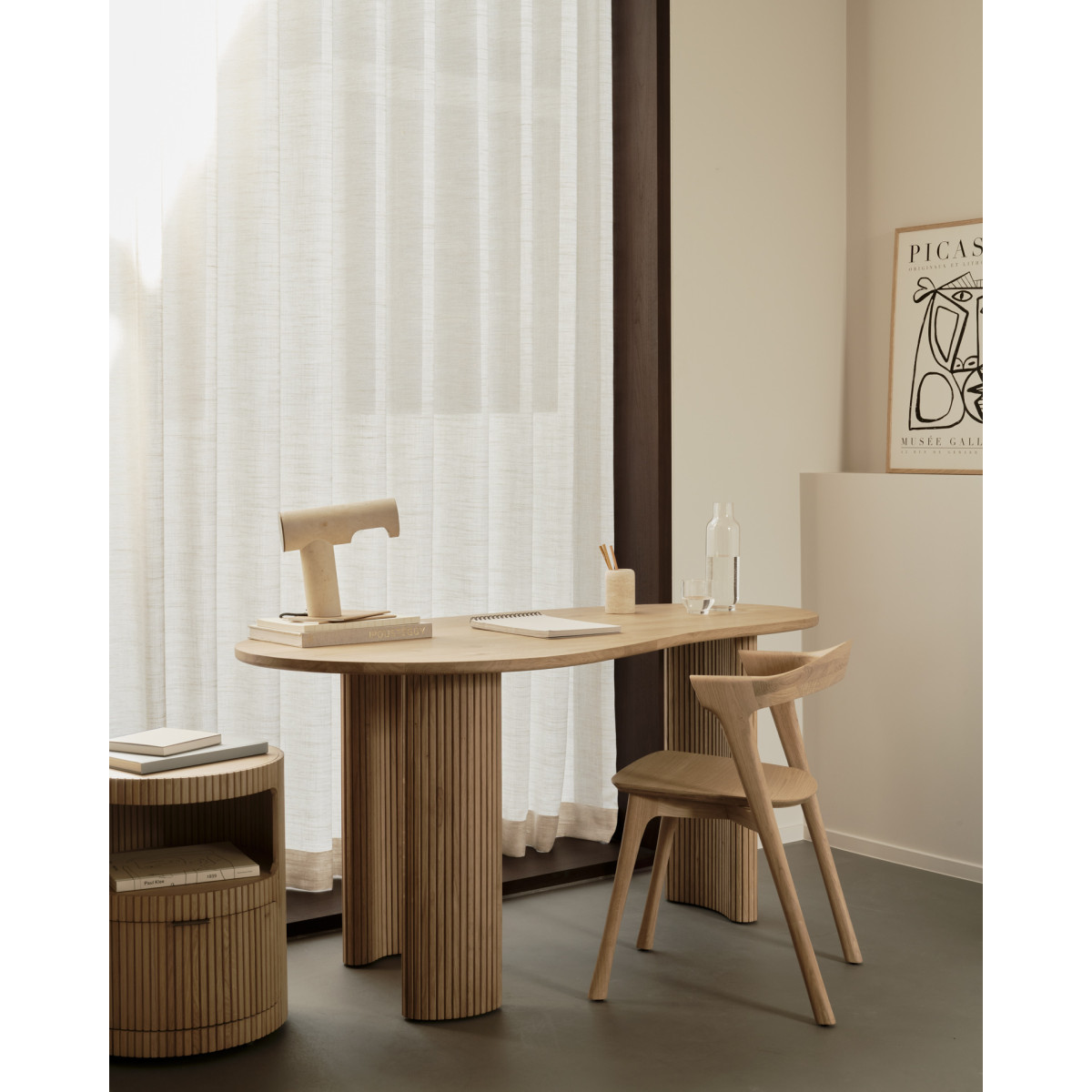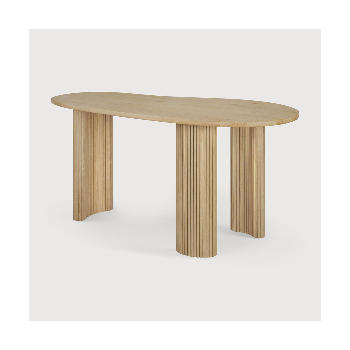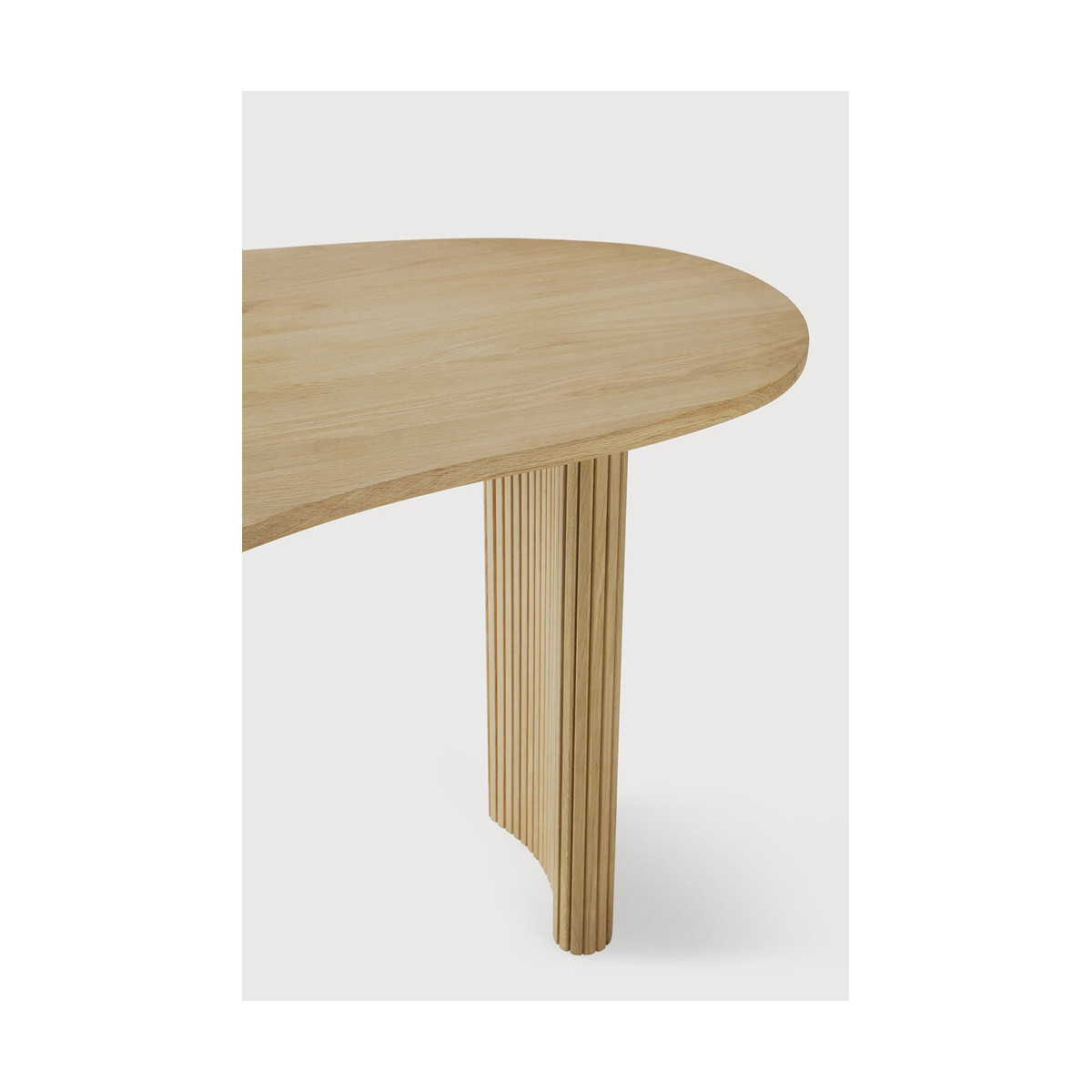 Le bureau Boomerang séduit par son design organique et audacieux, inspiré des formes douces et irrégulières de la nature. Son plateau ludique en forme de galet s’associe à un piètement arrondi à effet cannelé, offrant une silhouette singulière et pleine de caractère. Conçu en chêne massif avec finition vernie, il allie robustesse et élégance intemporelle. Véritable pièce maîtresse, ce bureau s’intègre aussi bien dans un espace de travail contemporain que dans un intérieur plus classique, apportant chaleur et originalité. Livré avec visserie incluse et patins de protection, il est prêt à être assemblé en toute simplicité. 100 % bois massif, le bureau Boomerang incarne un mobilier à la fois pratique et artistique, pensé pour inspirer vos journées.