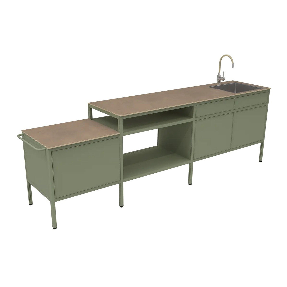 La cuisine d’été La Généreuse, imaginée par Fermob au sein de la collection GOOSTO, réinvente l’espace culinaire en extérieur avec élégance et praticité. Véritable prolongement de la maison, elle structure la terrasse ou le jardin en un lieu convivial dédié à la préparation et au partage. Son design sobre met en valeur des volumes équilibrés et une organisation pensée pour simplifier chaque geste. Grâce à sa modularité, elle s’adapte aisément à différentes configurations : en îlot central pour créer un point de rencontre ou installée contre un mur pour optimiser l’espace, avec des aménagements ajustables selon les besoins.
