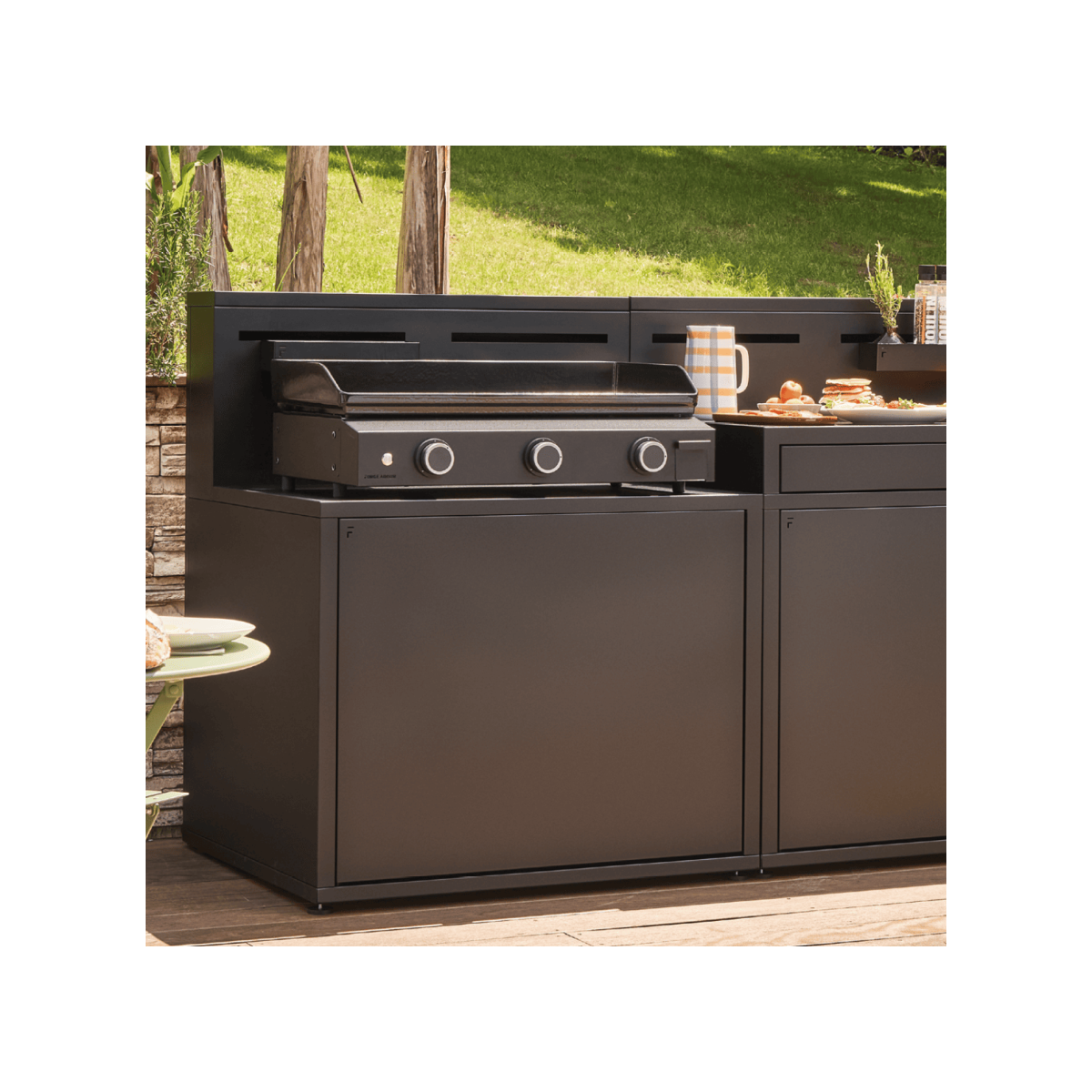La plancha Origin gaz Forge Adour, garantie 10 ans, allie performance, durabilité et design intemporel en acier noir.Son nouveau design intègre désormais le bac à graisses de 750 ml directement dans le châssis de la plancha, offrant un confort d’utilisation et un entretien simplifié.Avec son revêtement trois couches, elle résiste aux chocs, aux UV et à la corrosion. Associez-la au chariot Origin et au capot Origin pour une expérience complète de cuisson en extérieur. À poser ou à intégrer dans une cuisine d’été Forge Adour, la plancha Origin s’adapte à tous vos espaces extérieurs.