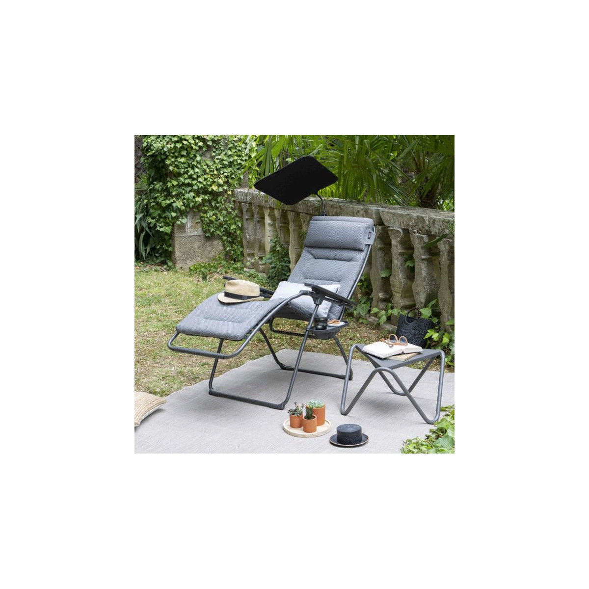 Cette ombrelle réglable est l’accessoire indispensable pour profiter pleinement de vos moments de détente à l’abri du soleil. Ses lignes sobres et contemporaines lui permettent de s’intégrer facilement à tout mobilier d’extérieur, tandis que son système de fixation simple et modulable assure une installation rapide sur tous les tubes ronds jusqu’à 22 mm de diamètre. Grâce à son réglage orientable, elle s’adapte aux différentes heures de la journée pour offrir une protection optimale, et sa conception en matériaux haut de gamme — tissu Dralon déperlant 100 % acrylique, résistant aux UV, tube acier robuste et pince plastique ajustable — garantit une excellente durabilité. Compatible avec les fauteuils Relax RT, RCLIP, RSX, FUTURA et FUTURA XL, le bain de soleil SIESTA L ainsi que les modèles ALU CHAM et ALU CHAM XL, elle devient un compagnon idéal pour créer une zone d’ombre confortable et élégante où que vous soyez.