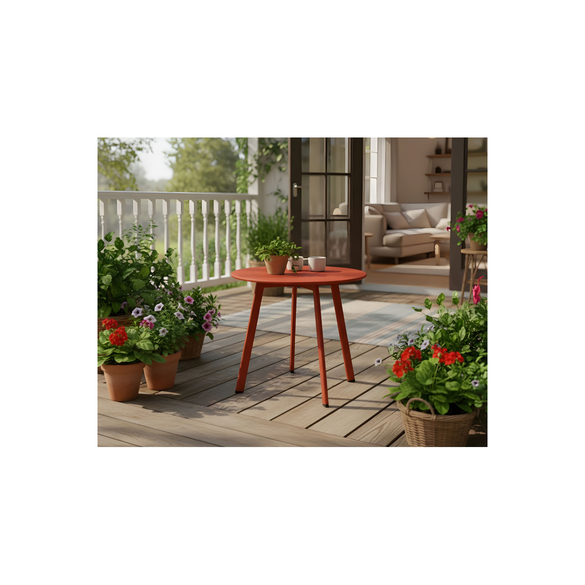 La table basse Massaï allie design élégant et praticité pour votre espace extérieur, son plateau plein et sa structure en acier recouvert de peinture époxy assurent solidité, durabilité et une finition soignée, légère et facile à déplacer, elle se positionne aussi bien devant un salon détente que près d’un bain de soleil pour vous permettre de profiter pleinement d’un moment de détente avec un livre, un verre ou un apéritif entre amis, sa conception multifonctionnelle en fait un allié quotidien sur votre terrasse ou balcon, il est conseillé d’utiliser une housse de protection lorsque le mobilier reste dehors et d’entretenir régulièrement l’acier pour préserver sa longévité
