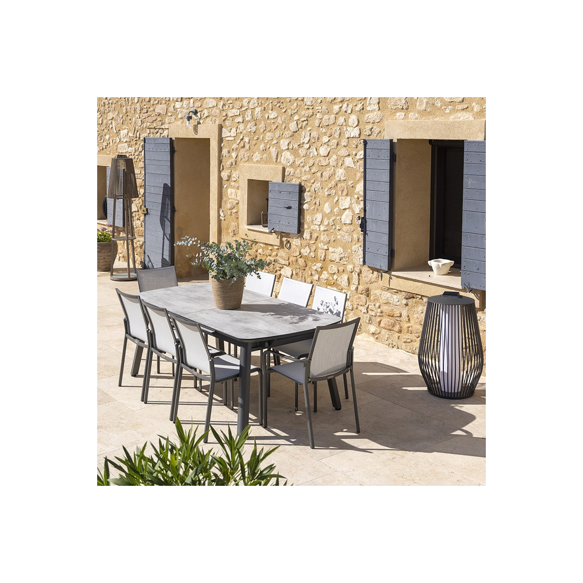 nvitez l’élégance nordique dans votre extérieur avec la gamme COPENHAGUE, une collection inspirée du design scandinave, mêlant courbes rétro et robustesse de la structure aluminium. Pensée pour durer, elle associe matériaux nobles et grande facilité d’entretien : le plateau HPL finition béton ciré nécessite très peu de soins. La nouveauté phare : la table extensible 200/300 x 100 cm, en aluminium gris espace et plateau HPL béton ciré, pensée pour sublimer votre terrasse. Ses lignes aériennes, son piétement évasé et sa silhouette intemporelle apportent une élégance sobre et contemporaine. Pratique et conviviale, elle s’allonge aisément pour accueillir jusqu’à 12 convives, garantissant confort et stabilité. Un incontournable pour compléter harmonieusement la collection COPENHAGUE avec des matériaux modernes et durables.
